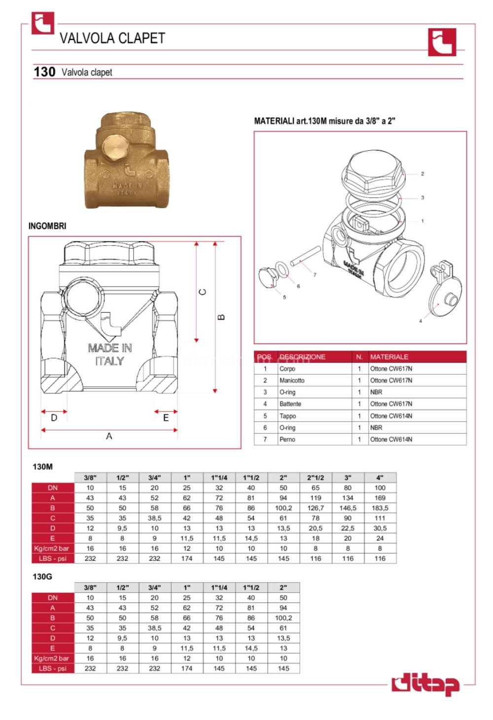 Thông số kỹ thuật van 1 chiều ITAP 130