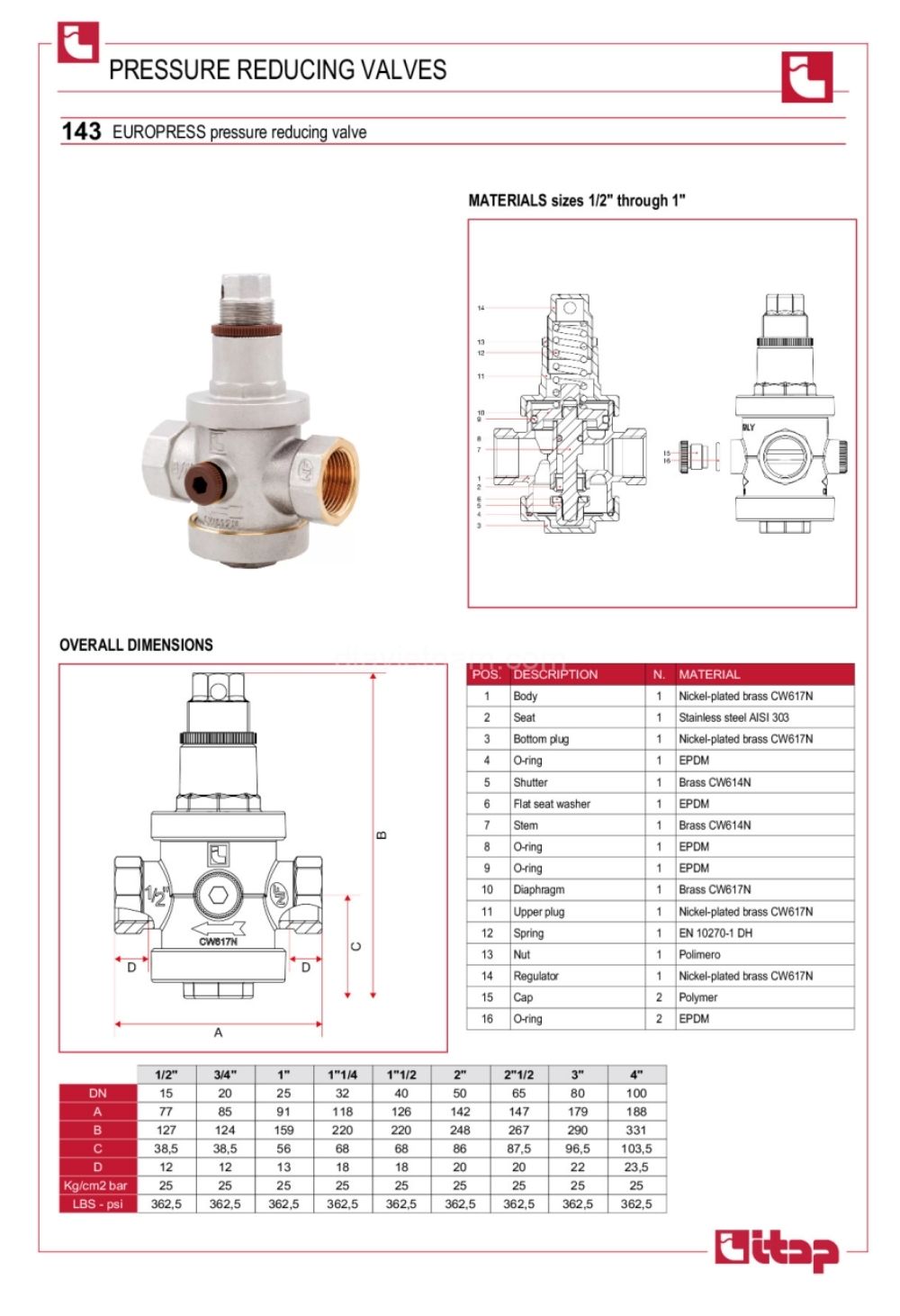 Bảng kích thước van giảm áp ITAP 143